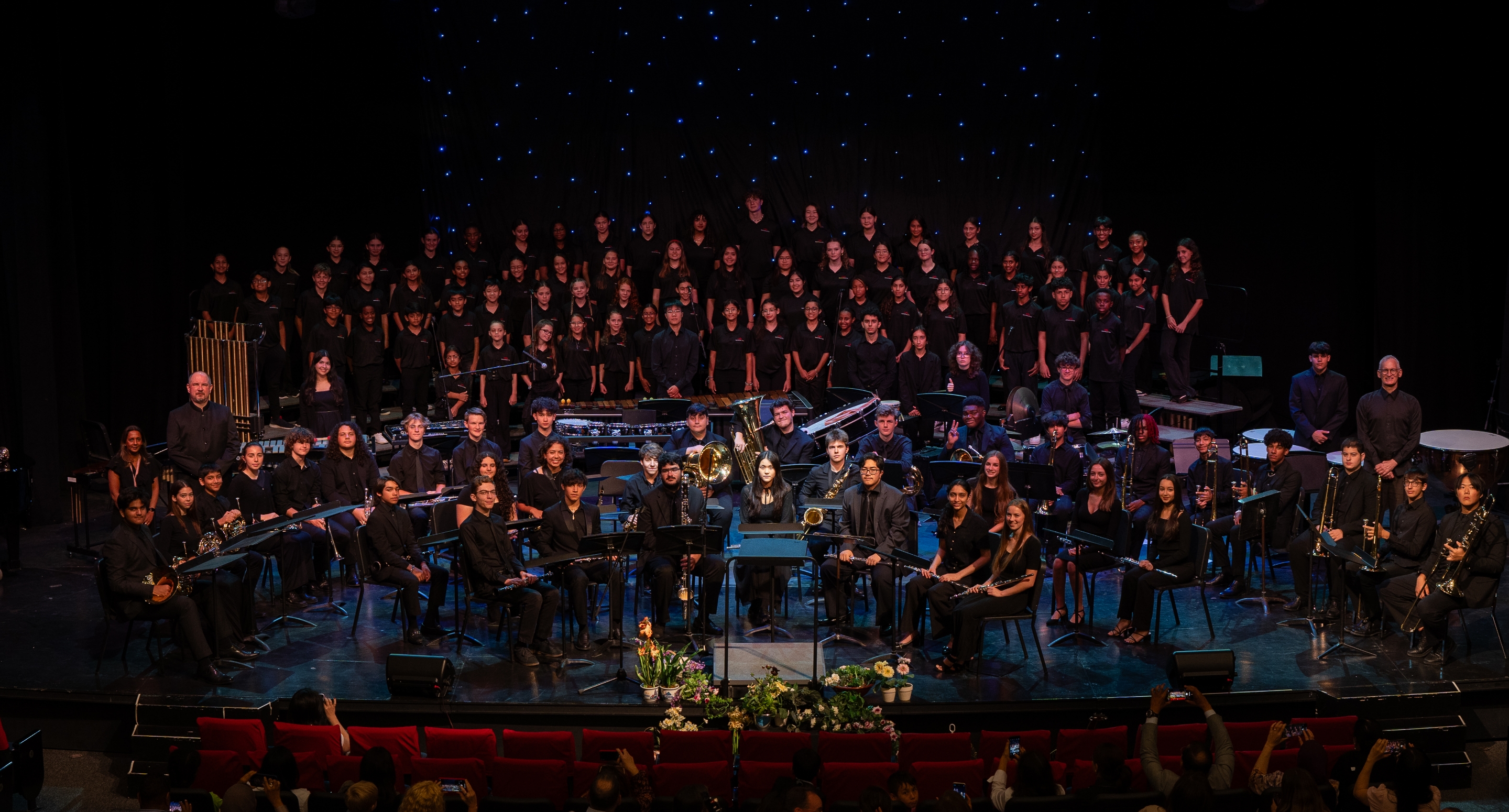 High School Music at ASD offers diverse pathways for every learner, from established musicians to first-time performers. Students explore Wind Ensemble, Percussion Ensemble, Treble Choir, Mixed Choir, Guitar, and Music Production while engaging in award-winning performances and creative collaborations. Through Tri-M, jazz ensembles, a cappella groups, digital music, and the annual fall musical, students develop leadership, artistry, and confidence. Together, they shape a dynamic community where passion for music thrives every day.