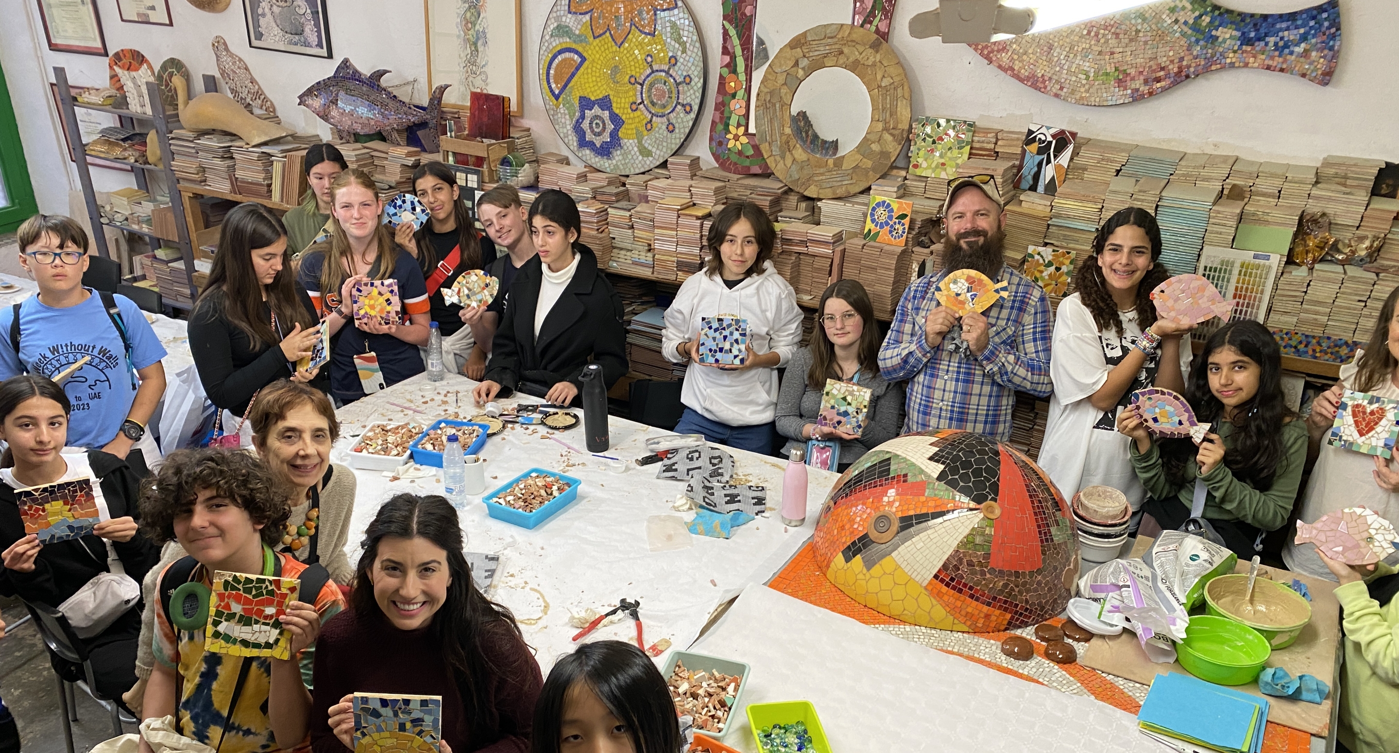 Visual Arts in Middle School proudly highlights student creativity through exhibitions featuring ceramics, paintings, drawings, digital art, and fused glass. These events bring families and the community together while giving students meaningful opportunities to share their work. Enrichment continues through participation in the Empty Bowls Event and The Memory Project, as well as annual international art trips where students explore global art and architecture (Barcelona 2024, Barcelona 2023, Prague Art Trip).